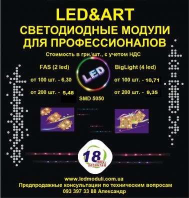 Покупайте светодиодные модули Led&Art b Вы без особых усилий сможете делать наиболее эффективные на сегодняшний день яркие, уникальные светодинамические рекламные конструкции.