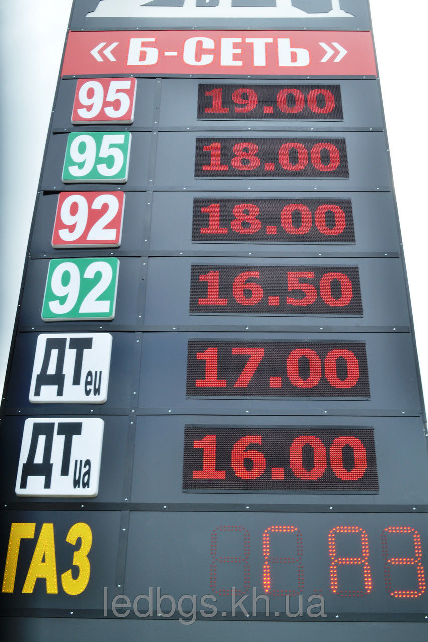 Компания Ledbgs предлагает широкий ассортимент светодиодных табло отображения информации: бегущие строки, аптечные кресты, табло обмена валют, видеоэкраны, электронные модули для стел АЗС, спортивные табло. Гарантия на всю продукцию — 24 месяца. Доставка по Украине бесплатная. Прикрепленные файлы:
